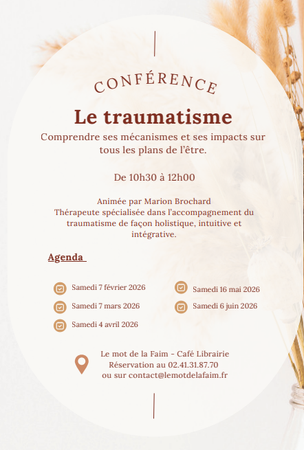 Cette conférence propose une plongée au cœur de la notion de traumatisme : sa définition, ses mécanismes physiologiques et ses impacts sur les différents plans de l’être. Elle met en lumière la manière dont le corps, l’esprit et l’âme gardent l’empreinte des expériences vécues.